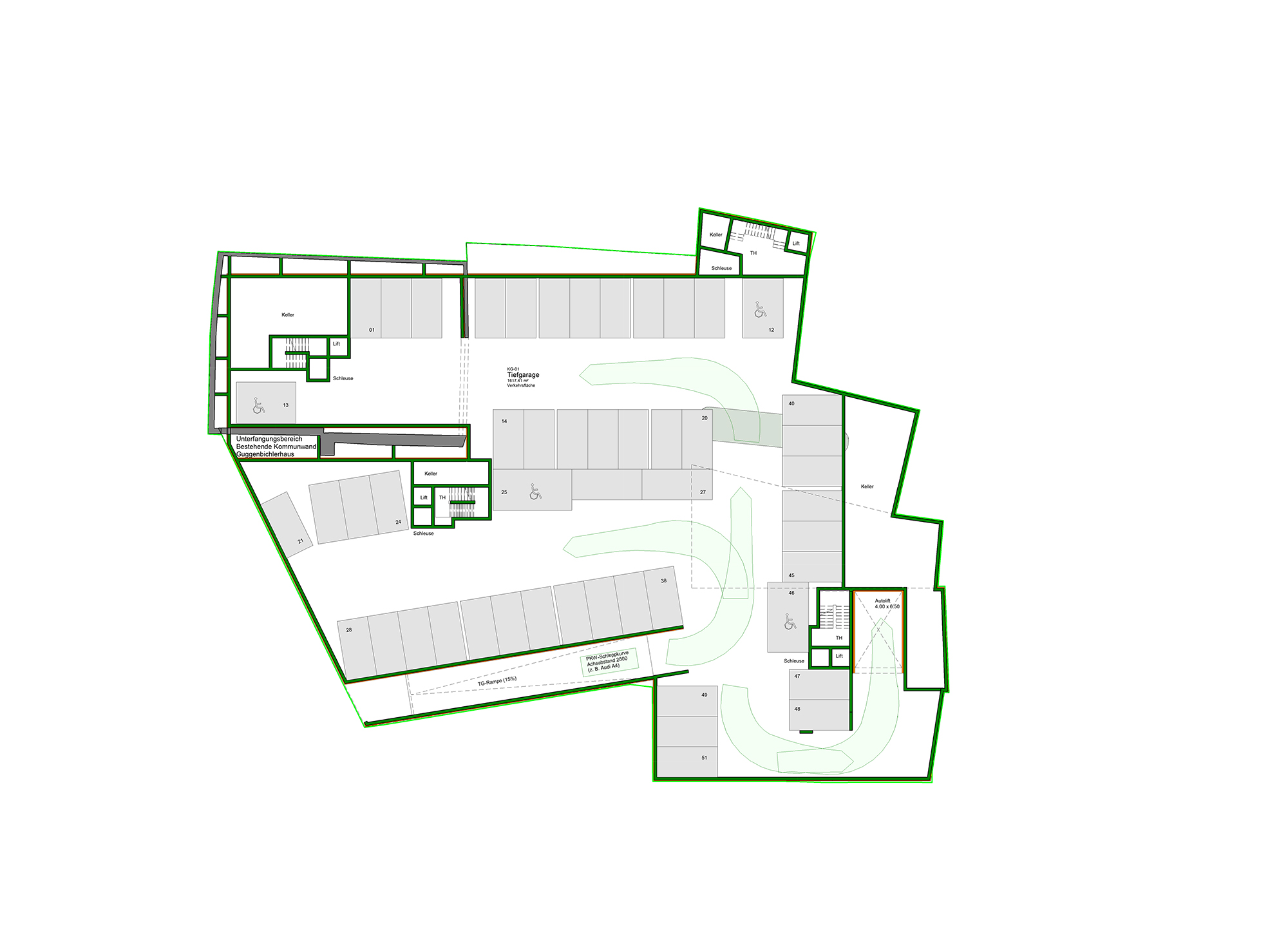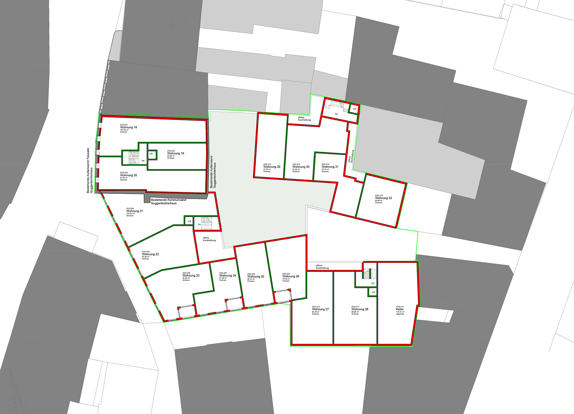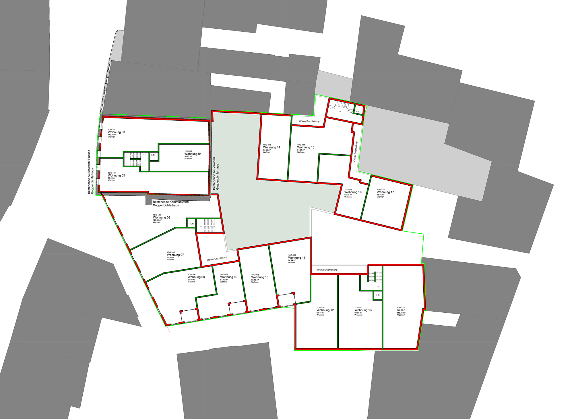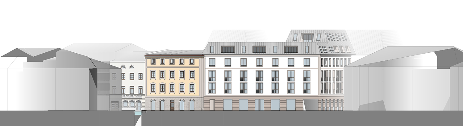 Ansicht von Westen – Poststraße – Jahngasse (vertikal zur Fassade Jahngasse)