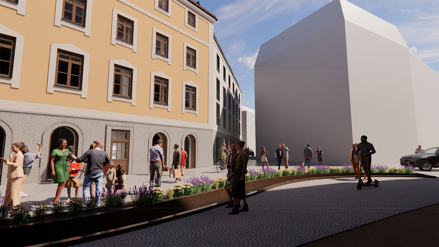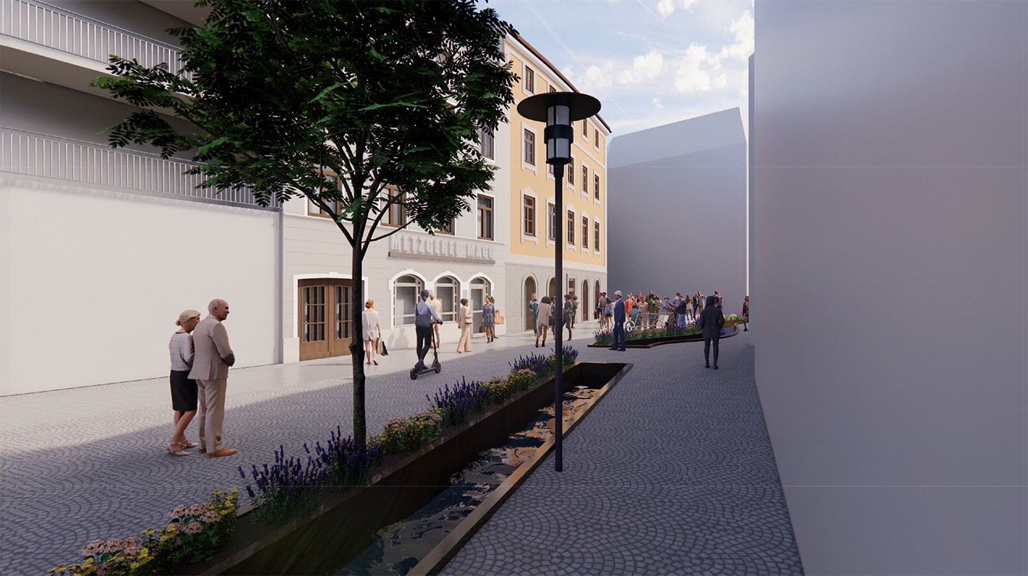 Perspektive – Poststraße – Westansicht- zur Jahngasse hin